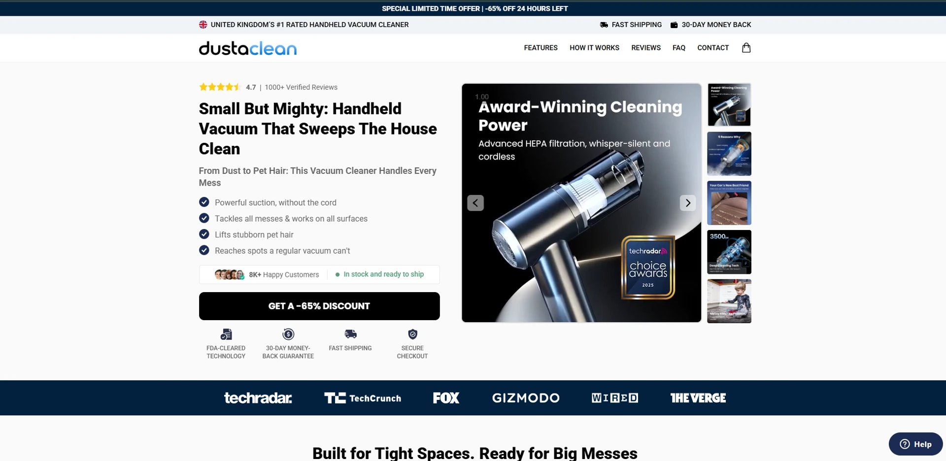 DustaClean is designed for small areas and precision cleaning, not large surfaces. It works best as a complement to traditional cleaning tools.